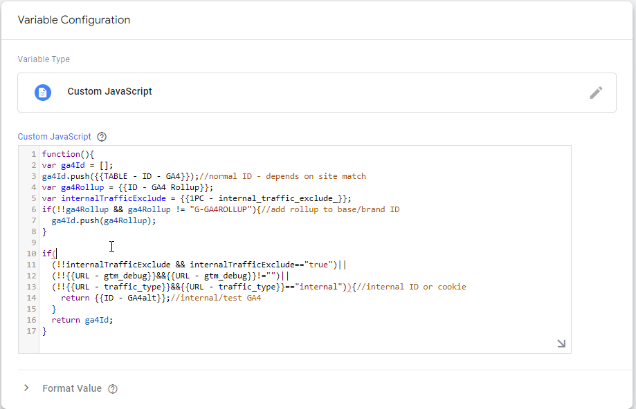 Update January 2024: I now use a JavaScript variable for the “Tag ID”. This allows me to dynamically change the ID depending on if it’s an internal or test user. I’ve got a special GA4 property to receive internal or test hits. This keeps my normal GA4 property cleaner, with less internal traffic contamination.